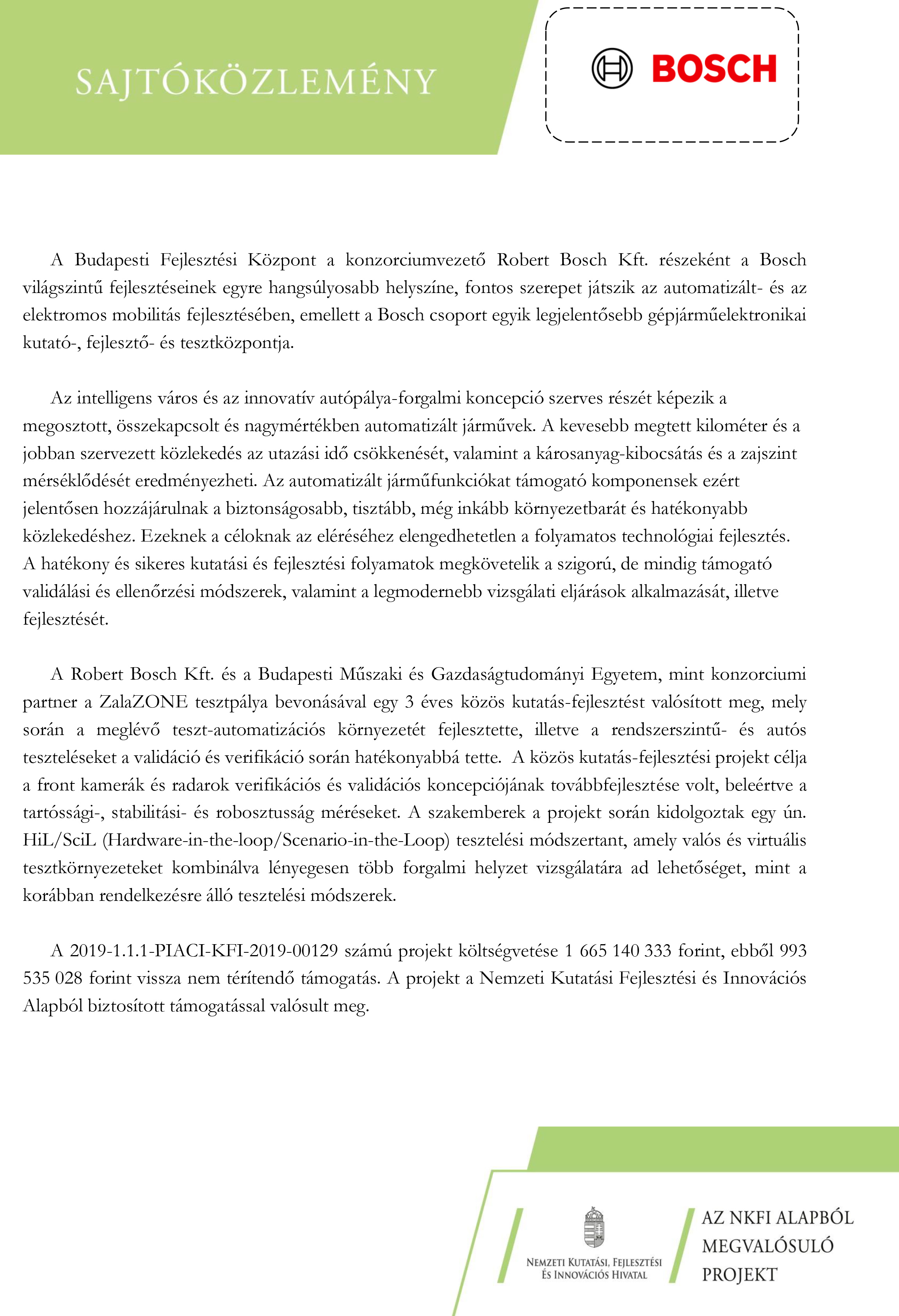 Bosch-BME közös fejlesztési projekt