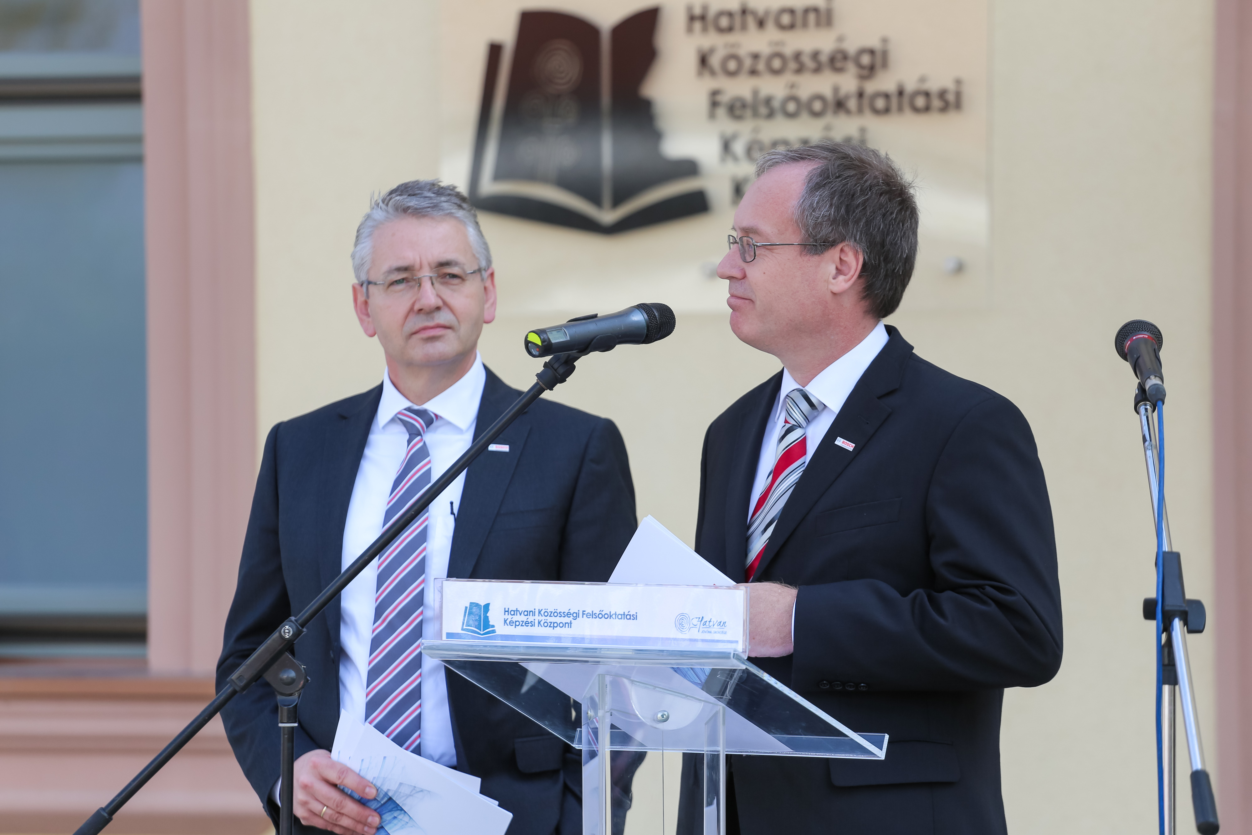 Hatvan Community College is not only the merit and interest of Bosch, but it also serves the development of the city of Hatvan. On the picture from left: Roger Seemeyer, technical plant manager of Robert Bosch Elektronika Kft. of Hatvan and Volker Schilling, commercial plant manager of Robert Bosch Elektronika Kft. of Hatvan