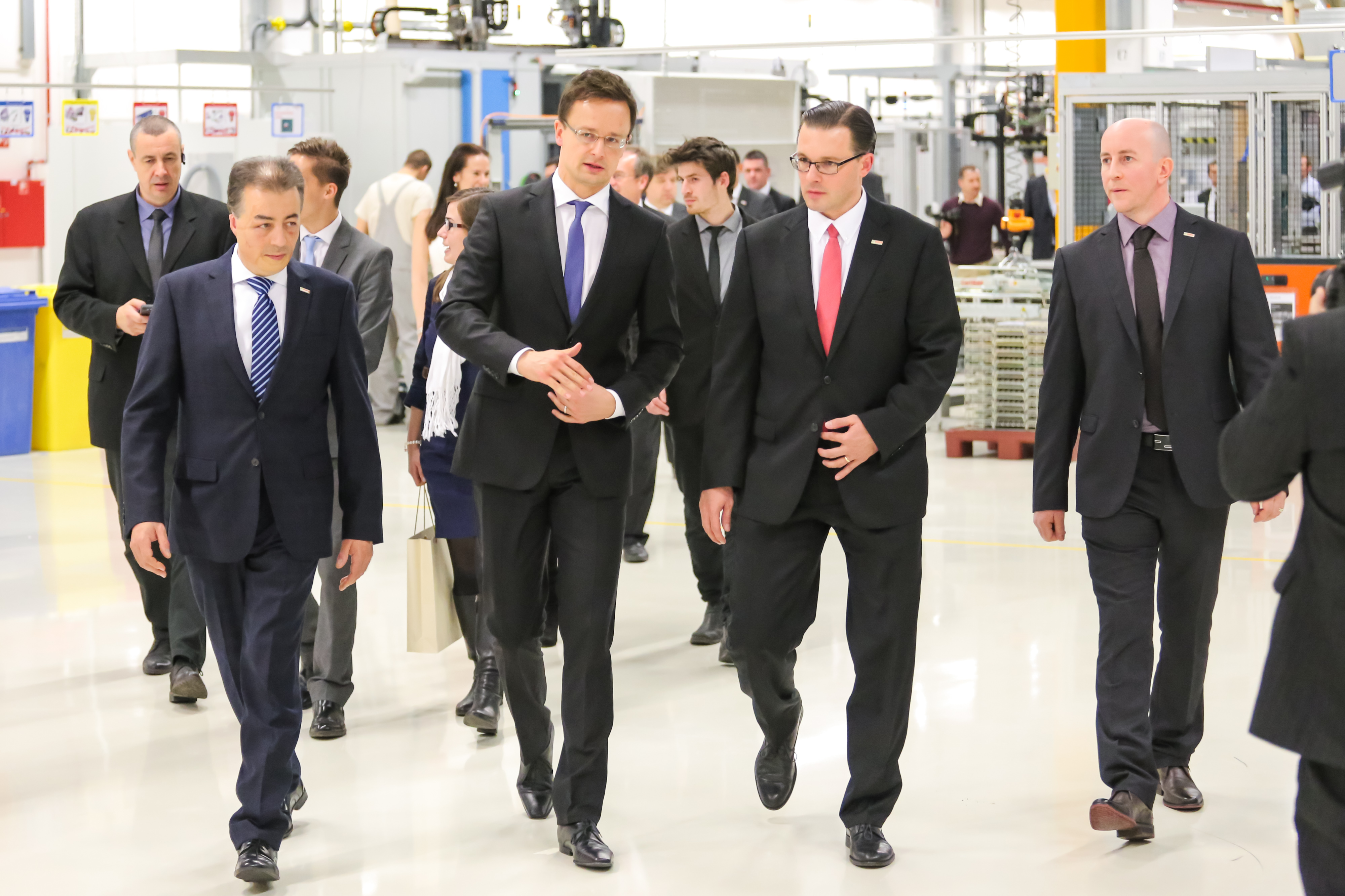 Bosch, a leading global supplier of technology and services, continuously invests in Hungary and created a total of 130 new jobs through three supported development projects for its Hungarian subsidiary Robert Bosch Automotive Steering Kft. On the picture (from left): Stefan Basso, commercial plant manager of Robert Bosch Automotive Steering Kft., Szijjártó Péter, Minister of Foreign Affairs and Trade, and Daniel Pridal, technical plant manager of Robert Bosch Automotive Steering Kft.