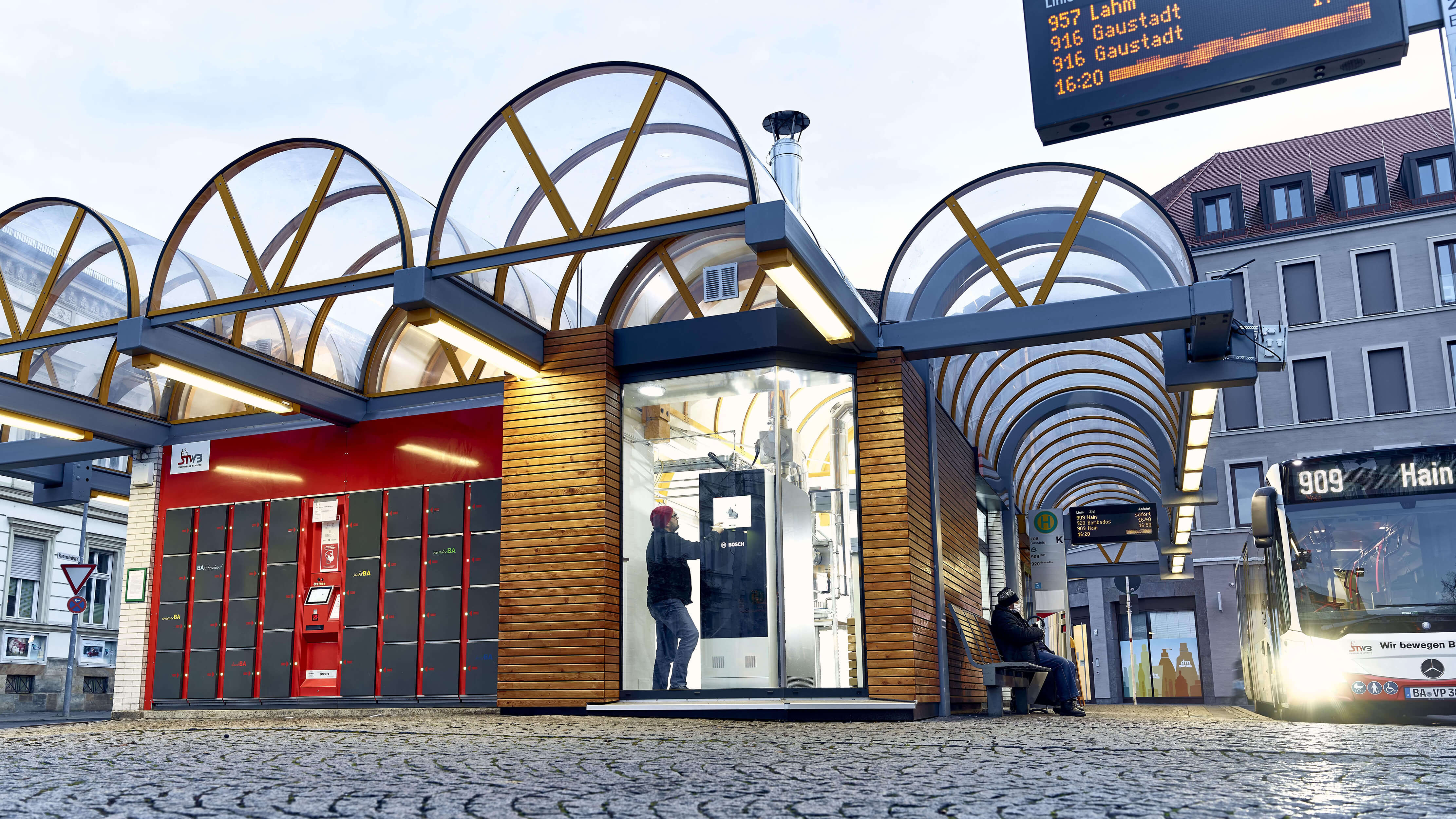 Bosch is also focusing on a growth market for the hydrogen megatrend: the company believes the market for green hydrogen in the EU will be worth almost 40 billion euros by 2030 – with annual growth rates of 65 percent. Fuel cells convert hydrogen into electricity, and Bosch is developing both stationary and mobile fuel-cell solutions. From 2021 to 2024, Bosch plans to invest one billion euros in fuel-cell technology. “Bosch is already H2-ready,” Denner said. The plan is to put 100 stationary fuel-cell plants into operation this year. They will supply electricity to users such as data centers, industrial manufacturers, and residential areas. One stationary solid-oxide fuel cell, located in the center of Bamberg, Germany, was brought into operation at the end of March 2021 together with Stadtwerke Bamberg, the city’s public utilities.