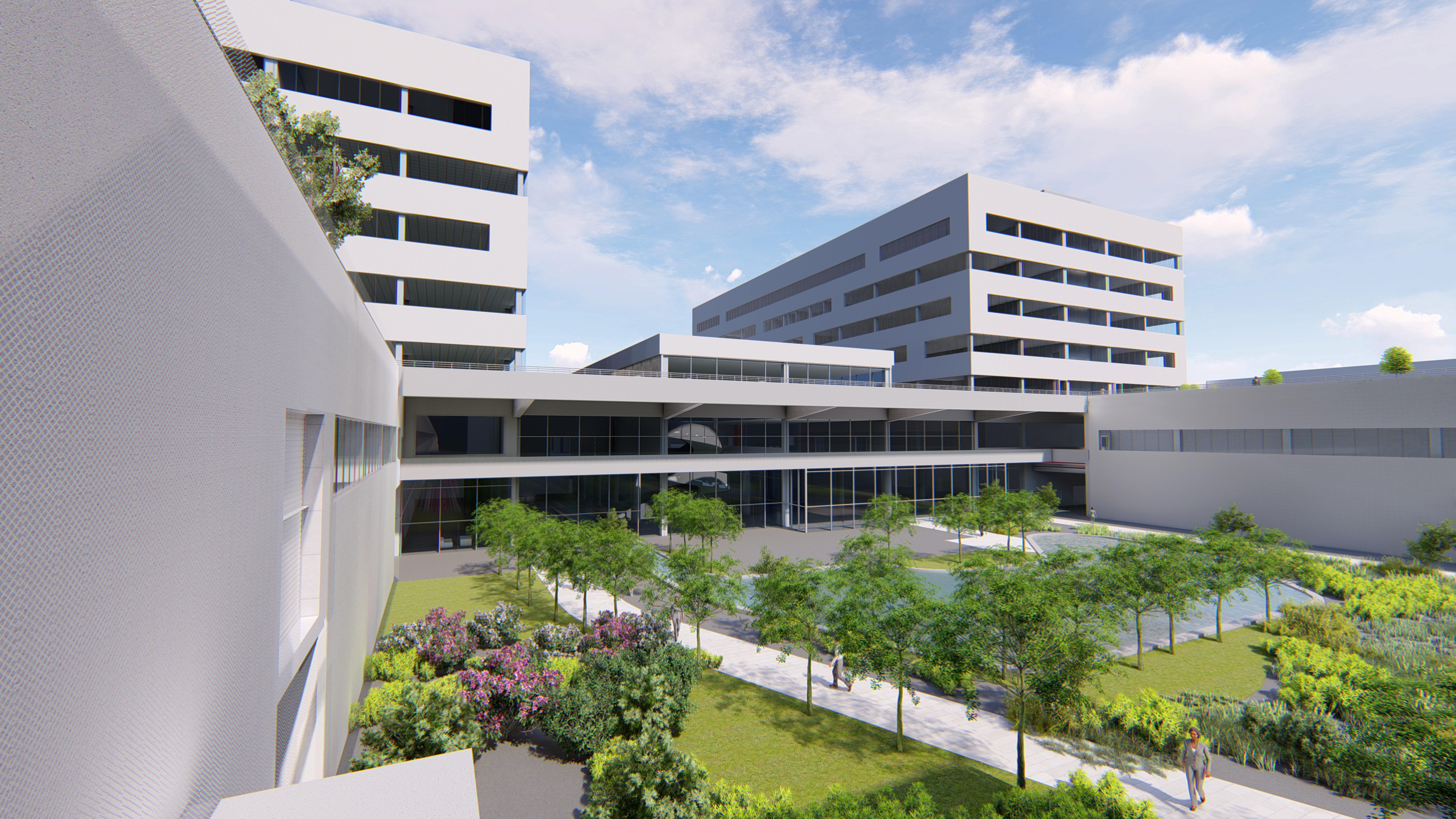 The new section of the Bosch campus will be completed in two phases, on an area of 90,000 square meters. The first phase will result in the main building with two towers. It will accommodate creative spaces, a conference hall, a large vehicle workshop and a canteen. Laboratories to be built in the first phase will include a special chamber for testing whole vehicles, with state-of-the-art, highly specialized measurement capabilities. The first section of a staff car park and a technical support building will also feature in the first phase. Another key element will be a 10,000 square meter proving ground for testing ultrasonic-, radar- and camera-based driver assistance systems. On top of its technical sophistication and inspiring working conditions, it will have eye-catching modern architecture, with a green roof and a pedestrian bridge to the campus building that went up five years ago.