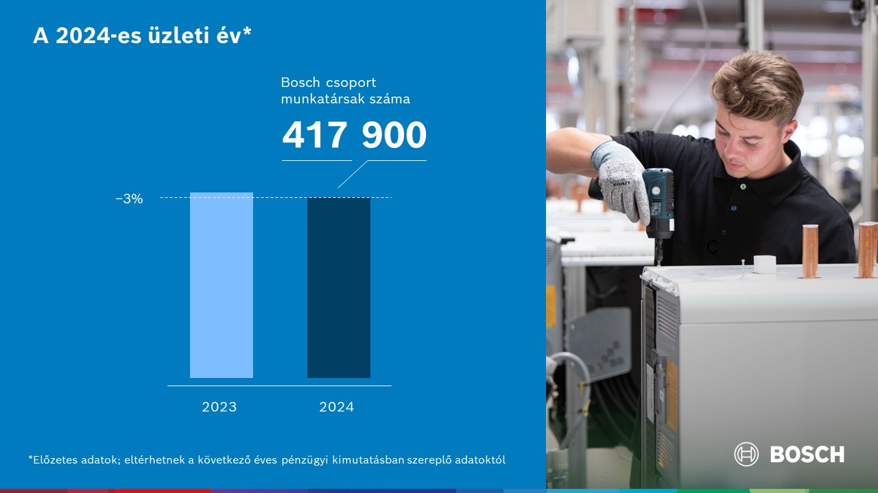 Stuttgart, Germany – Bosch, the supplier of technology and services, generated sales revenue of 90.5 billion euros in 2024, according to preliminary figures1. In nominal terms, this is a 1 percent year-on-year fall, and roughly on a par with the previous year when adjusted for exchange-rate effects. This equates to an EBIT margin from operations of 3.5 percent. “Despite our best efforts, Bosch, too, was not completely immune to economic developments, but we made a respectable showing compared to our industry peers,” said Stefan Hartung, chairman of the board of management of Robert Bosch GmbH, referring to the company’s published preliminary business figures. “Our technologies for the mobility and homes of the future remain key growth areas for us.” He pointed to efforts to strengthen competitiveness and growth in the 2024 fiscal year through strategic portfolio decisions involving both acquisitions and divestments. And, he added, the company also had to make certain structural adjustments.