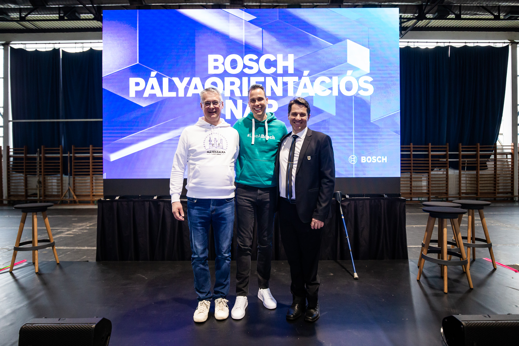 Balról jobbra: Dr. Hanusi Péter, Mátészalka Város polgármestere, Dr. Szászi István a Bosch csoport vezetője Magyarországon és az Adria régióban és Bétéri Zoltán, a Mátészalkai Esze Tamás Gimnázium igazgatója