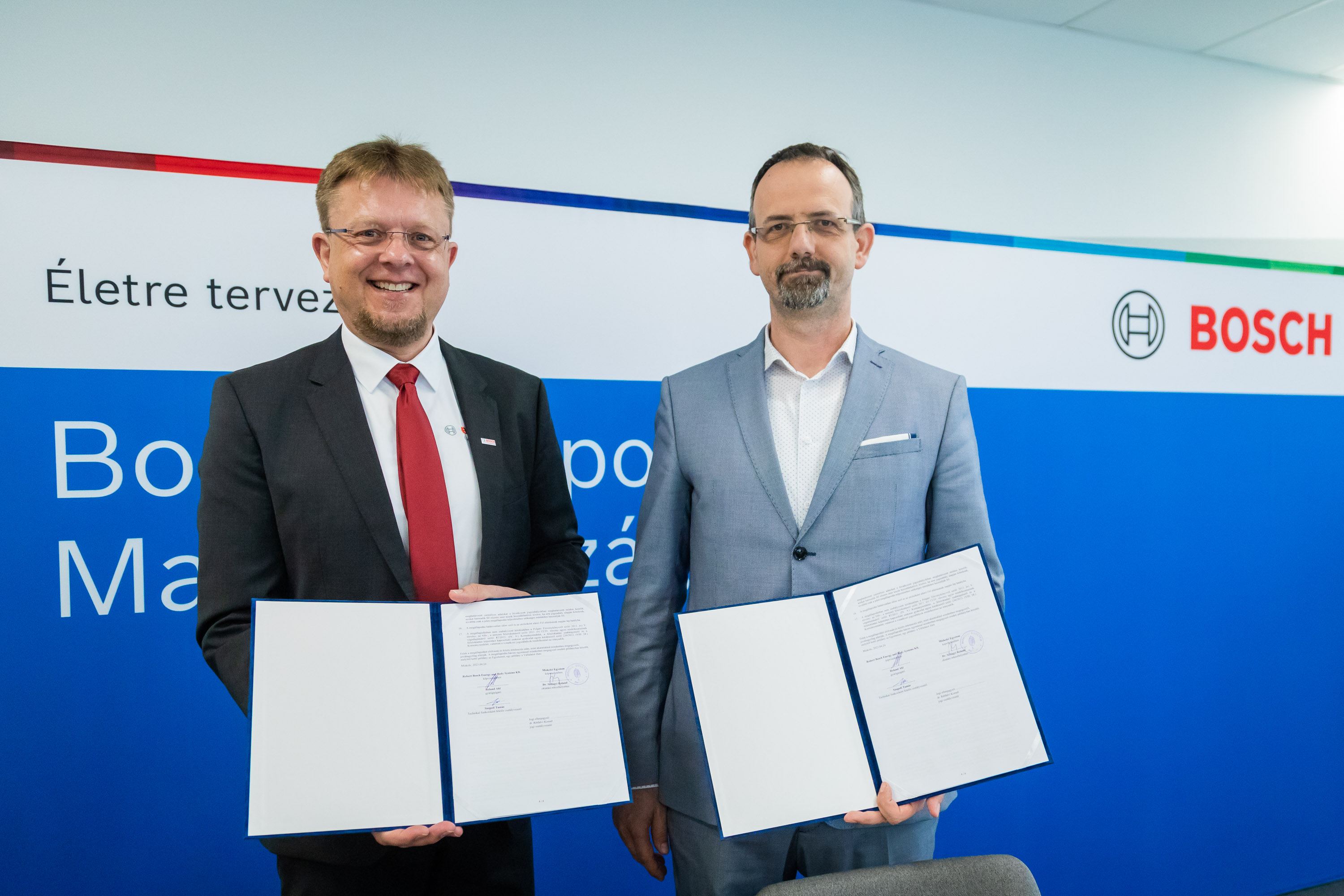 Átfogó képzési és kutatás-fejlesztési együttműködésről írt alá megállapodást a Miskolci Egyetem és a Robert Bosch Energy and Body Systems Kft. A képen Roland Ahl, a Robert Bosch Energy and Body Systems Kft. ügyvezető igazgatója és dr. Szilágyi Roland, a Miskolci Egyetem rektorhelyettese.