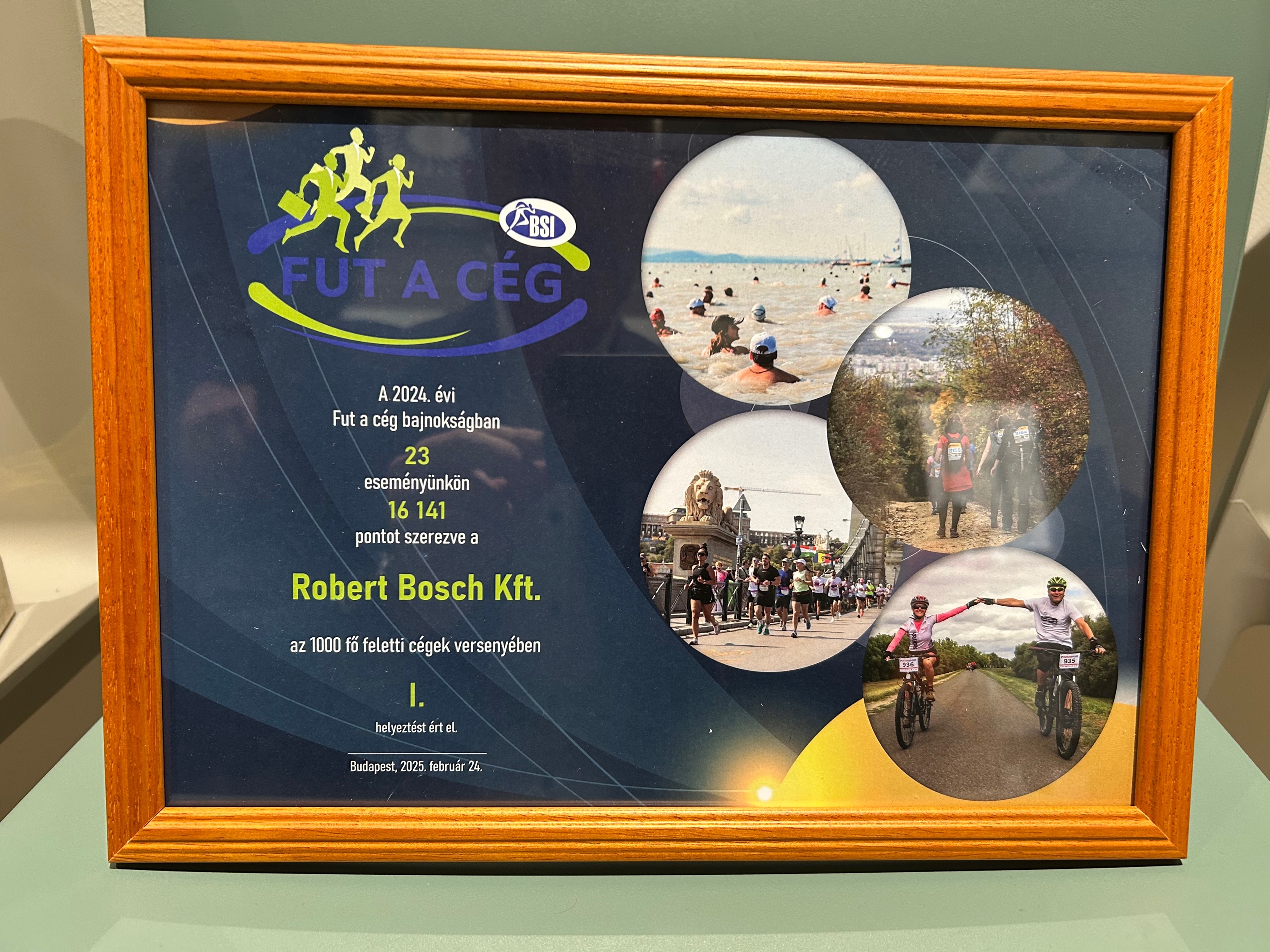 Példaértékű teljesítmény született a hazai vállalatok körében zajló Fut a cég megmérettetésen. A Robert Bosch Kft. 2024-ben már hatodik alkalommal vívta ki a legsportosabb hazai vállalatnak járó címet a Budapesti Sportiroda népszerű versenyén, amelyen több mint 700 cég vett részt. A Bosch sportolói közel 14 ezer kilométert futottak, 1700 kilométert kerékpároztak, 500 kilométert úsztak és 400 kilométert gyalogoltak 2024-ben. Ezzel a cég nemcsak a nagyvállalatok kategóriájában, hanem a teljes mezőnyt tekintve is abszolút első helyezést ért el.
