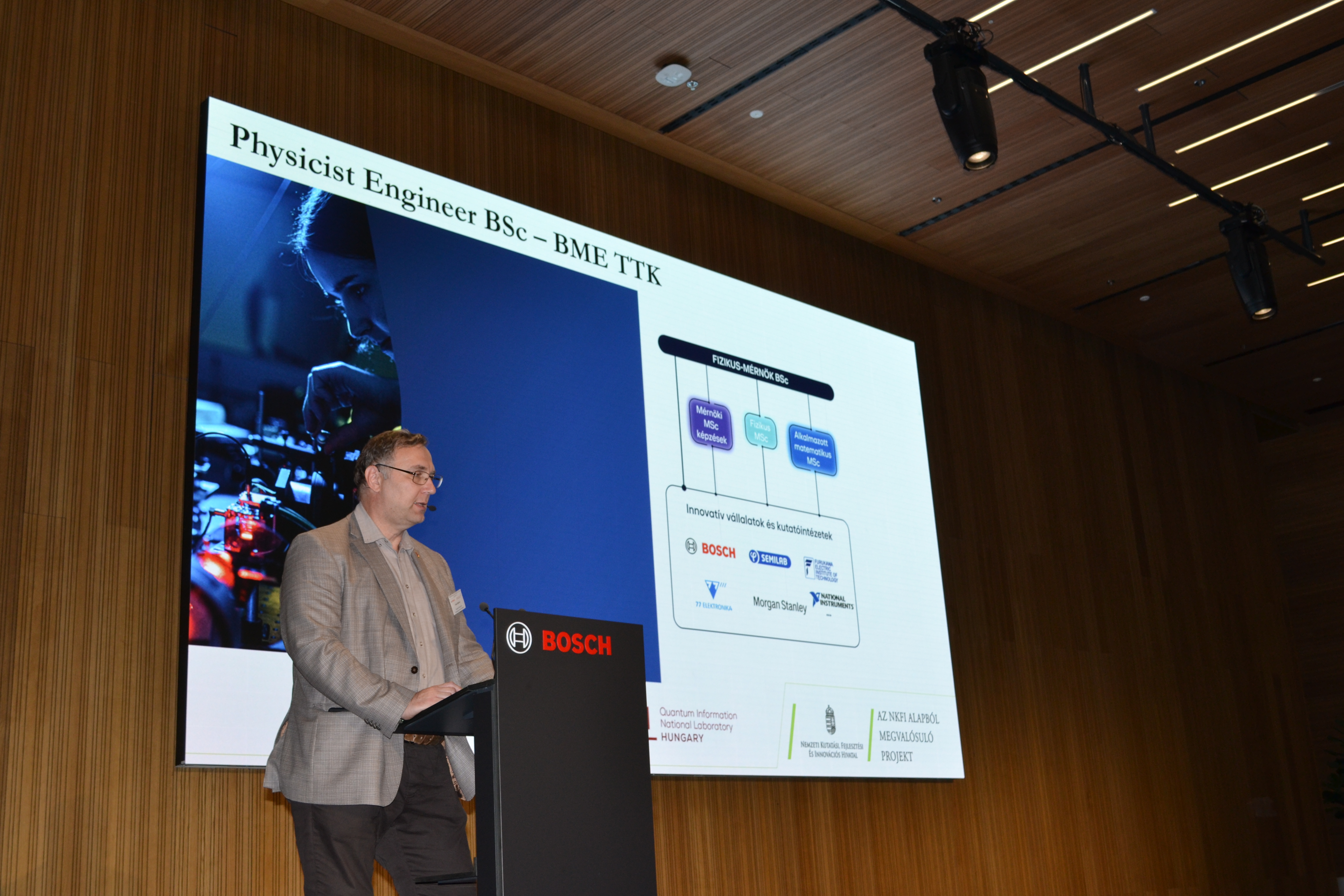 „Mára egyértelműen látszik, hogy a kvantumtechnológiában hatalmas lehetőségek rejlenek, és az elmúlt évtizedben ezen a területen a Bosch meghatározó szereplővé vált. Örömmel adtunk otthont a Kvantuminformatika Nemzeti Laboratórium Workshop 2025 című kiemelt eseménynek, hiszen közös célunk, hogy a kvantumtechnológia elméleti eredményei minél hamarabb az ipari termelés és a mindennapi élet részévé váljanak” – mondta el a konferencián Dr. Szászi István, a Bosch csoport vezetője Magyarországon és az Adria régióban.