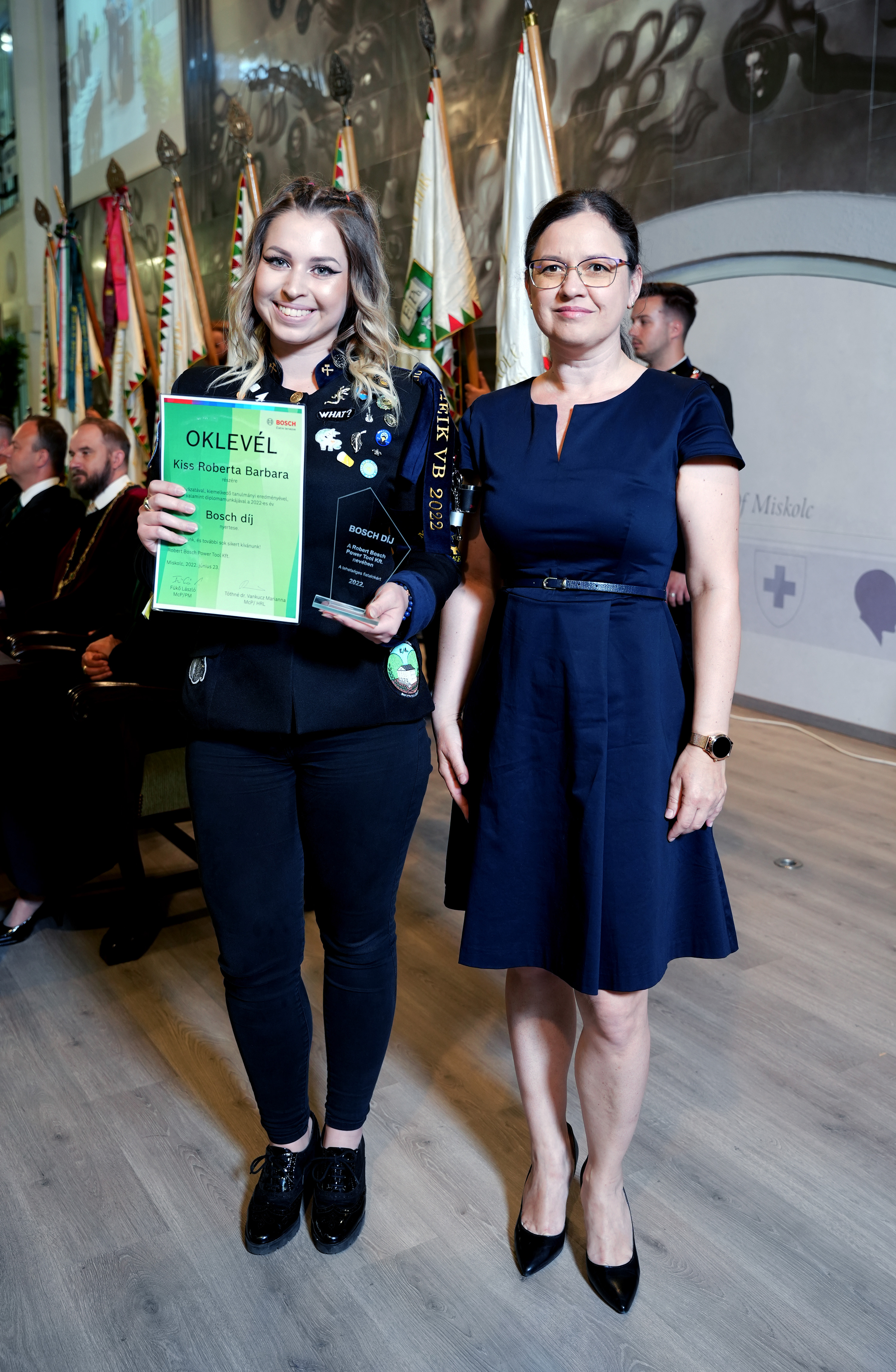 Miskolc – Átadták a Miskolci Egyetem Gépészmérnöki és Informatikai Kar, valamint a Gazdaságtudományi Kar diplomaosztó ünnepségén a Bosch-díjat egy-egy kimagasló tanulmányi eredménnyel és gyakorlati tapasztalattal rendelkező hallgatónak. Ez az egyetem egyetlen cég által adományozott elismerése, mely már több mint tízéves és pénzjutalommal jár, továbbá a díjazottaknak lehetőségük van részt venni egy állásinterjún a Robert Bosch Power Tool Kft.-nél. Az elismerést olyan végzős hallgatók kaphatják meg, akik tanulmányaik során kimagasló teljesítményt nyújtottak, és kutatási tevékenységet vagy egyéb közéleti, szociális, társadalmi munkát is végeztek.