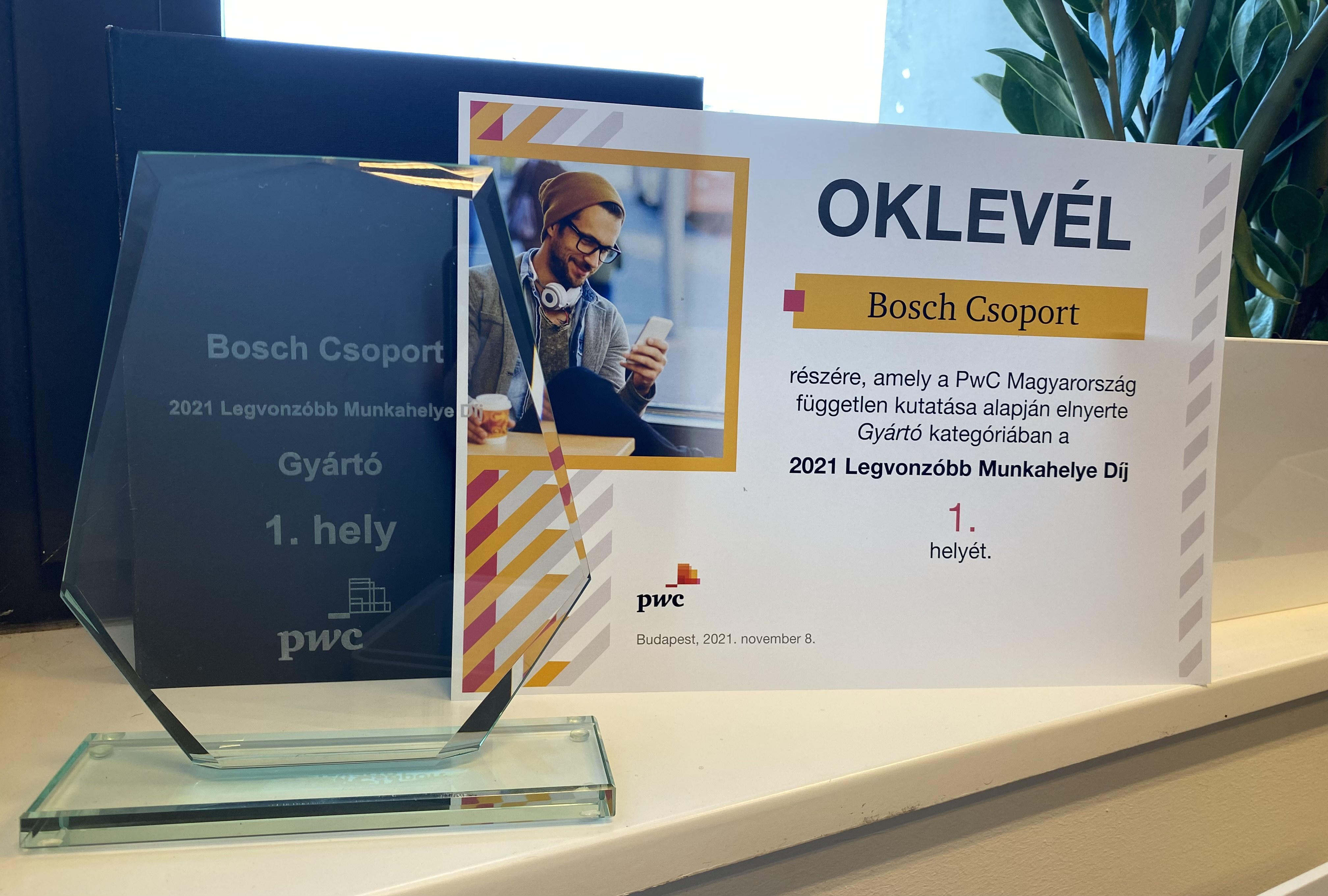 Budapest – Ötödik alkalommal lett a legvonzóbb munkahely gyártói kategóriában a magyarországi Bosch Csoport. Összesítettben pedig dobogós helyen szerepel a vállalat. A PwC Magyarország online kutatásában a 16-28 év közötti diákok, hallgatók és fiatal munkavállalók munkaerőpiaci-preferenciáit, és a számukra legvonzóbb munkáltatói márkákat mérte fel Magyarországon. Az eredmények alapján összesen tíz iparági kategóriában és egy összesített kategóriában osztották ki 2021 Legvonzóbb Munkahelye Díjakat. „Nagy öröm és megtiszteltetés számunkra, hogy immáron ötödik alkalommal választották a fiatalok a legvonzóbb munkahelyek közé Magyarországon a Bosch csoportot. Fontos visszajelzés, hogy azok a törekvések, amelyeket végzünk valóban fontosak a jövő munkavállalói számára is” – mondta Somogyi András, a Bosch csoport humán erőforrásért felelős alelnöke Magyarországon és az Adria régióban.