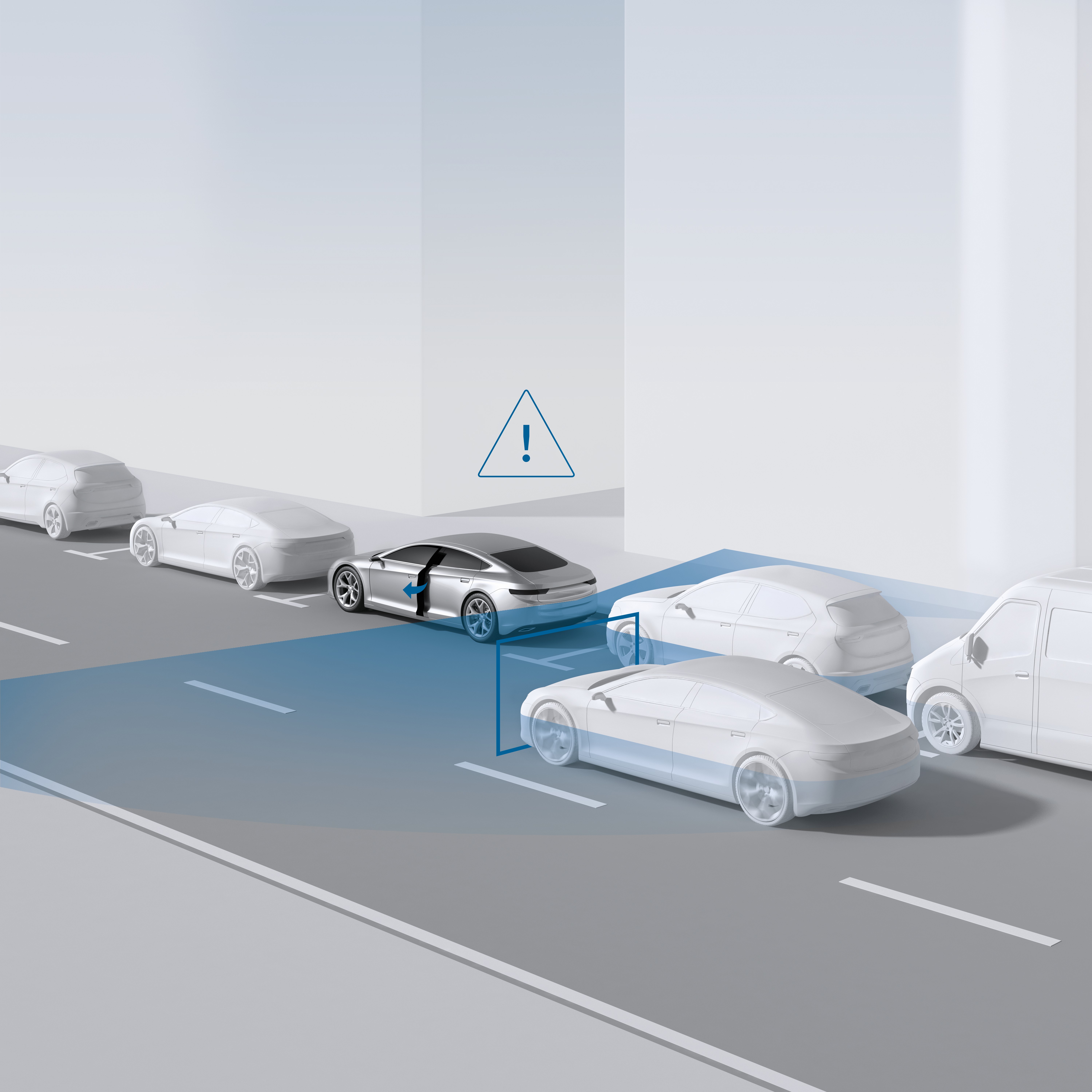 A Bosch közepes hatótávú radarérzékelői – amelyek autópályán a sávváltás biztonságára felügyelnek – immár városban is megóvhatnak az autósok és utasaik figyelmetlenségének veszélyes következményeitől. Az úttal párhuzamosan leparkoló autóból ugyanis gyakran kellő körültekintés nélkül mindjárt ki is szállnak a benne ülők – ama bizonyos váll feletti hátrapillantás elhagyásával. Kerékpárosok sokasága került már emiatt nem kívánt közeli kapcsolatba a gépkocsiajtókkal, majd landolt keményen az aszfalton. Mindez hatékonyan előzhető meg a Bosch kiszállás-figyelmeztető rendszerével, amely a jármű minden ajtajánál aktív és még néhány perccel a gyújtás lekapcsolását követően is figyelmeztetheti a benne ülőket az óvatlan ajtónyitásra. Az autó hátuljának jobb és bal oldalán egy-egy Bosch érzékelő felügyeli a mögöttes forgalmat – amelyek akár 20 méteres távolságból is felismerhetik azon közlekedőket, akik hátulról közelítenek az autó felé, illetve akik harántirányban az autó mögött, vagy akár már mellette tartózkodnak – s még az ajtók kinyitását megelőzően figyelmeztetnek.